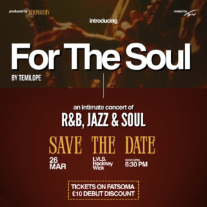 For The Soul, by Temilopeis an intimate, live concert featuring some of the greatest singers in London and a professional band. This curated concert blends original music with hits that honour the legacies of artist that have impacted music. Designed for trailblazers and dreamers, it’s a sophisticated space to unwind, reset, and connect with a community through music that truly feeds the soul. Unique in its elegant experience, it is prestigious in their fashion and showmanship, reflecting the high calibre of artistry and the UK’s vibrant music scene.