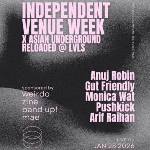 Asian Underground Reloaded is a small growing community on WhatsApp of primarily London based Asian artists and music industry types. This is our second social, and first showcase, falling on @ivw_uk ! Possibly one of the only all Asian lineups for IVW this year? At LVLs in Hackney Wick.